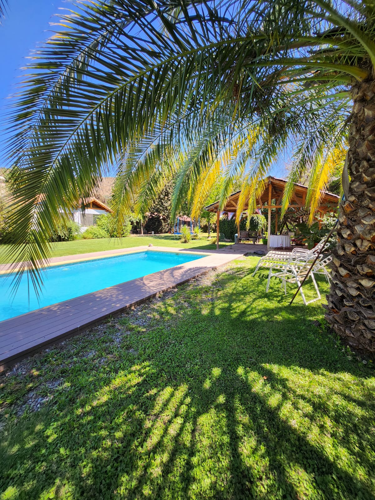 Esta hermosa propiedad se encuentra en un hermoso terreno 6200m2, cuenta con derechos de agua (clarillo), pozo de riego de 30.000 litros, una gran piscina de 8x5, quincho con 2 hornos de barro más parrilla y lava copas, amplia bodega de 40 m2 con baño completo.
